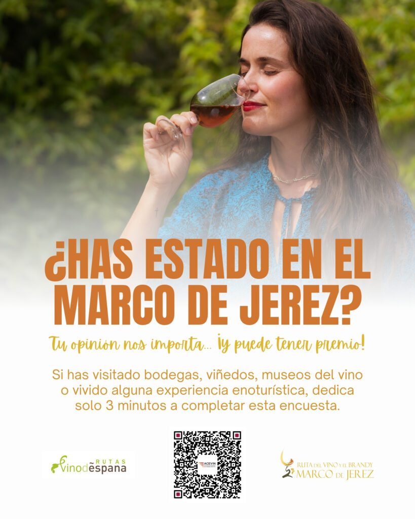 La Ruta del Vino y el Brandy del Marco de Jerez lanza una nueva encuesta dirigida a todas las personas que visitan nuestro territorio con motivaciones enoturísticas. Esta herramienta, facilitada por ACEVIN (Asociación Española de Ciudades del Vino), tiene como objetivo conocer mejor los perfiles, intereses y hábitos de quienes eligen nuestras bodegas, viñedos, museos del vino, hoteles, restaurantes y demás espacios vinculados al enoturismo.